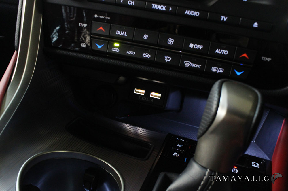 コンソール周りはカップホルダーイルミ、USBライト、ヒーター&ベンチレーションでバッチリ♪
