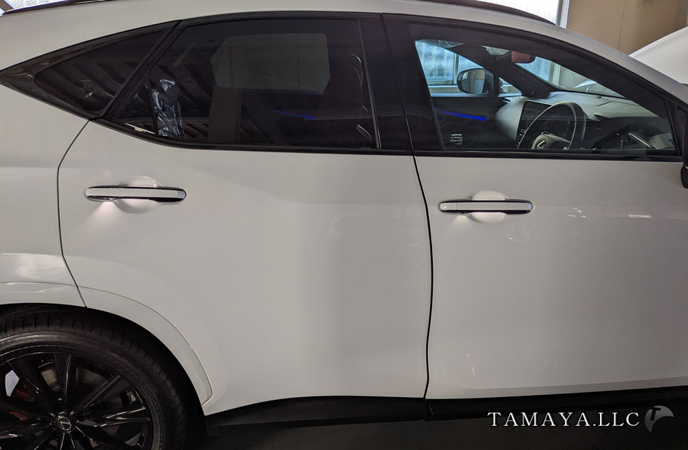 新型レクサスNXのウェルカムランプ。ドアハンドルが光る部分を