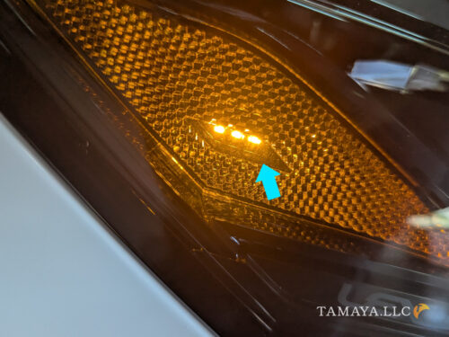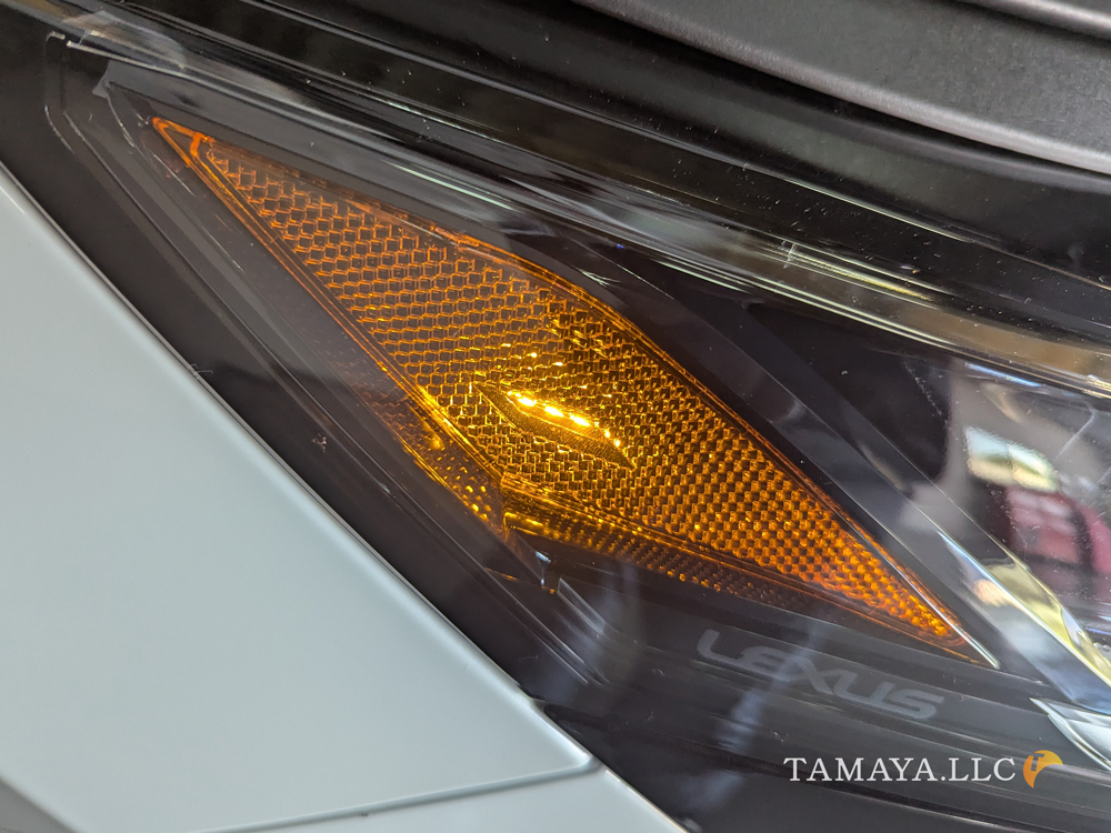 日本用のヘッドライト、サイドのオレンジマーカー部分に