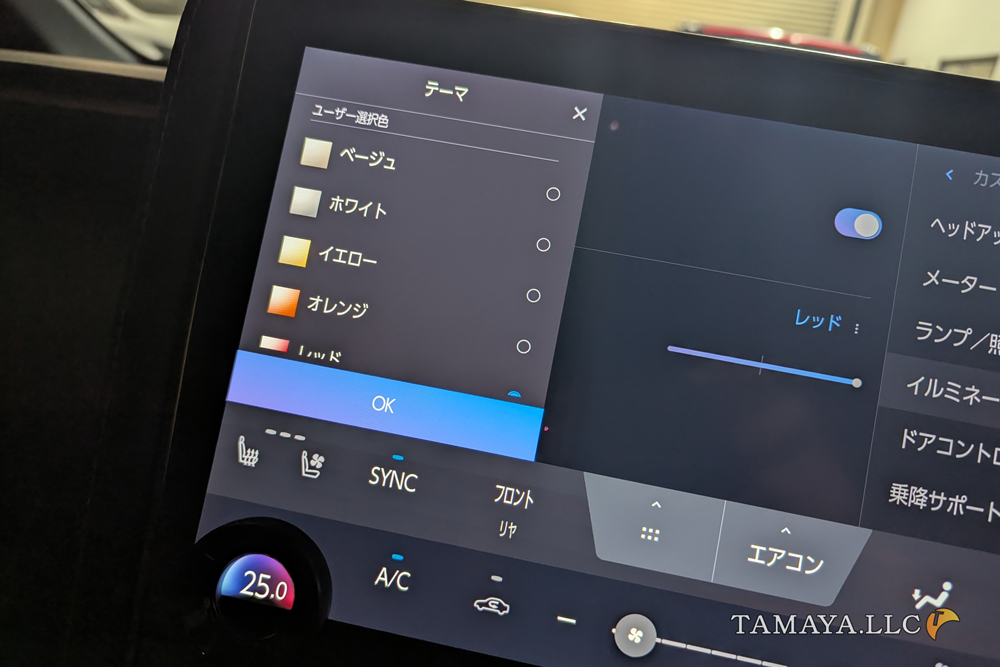色変更などもナビ画面から操作できるのがこれまた純正然です。