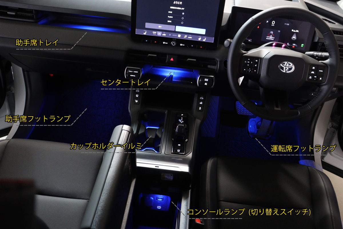 新型60RAV4 純正オプションのインテリアイルミネーション(リアフットランプ)は